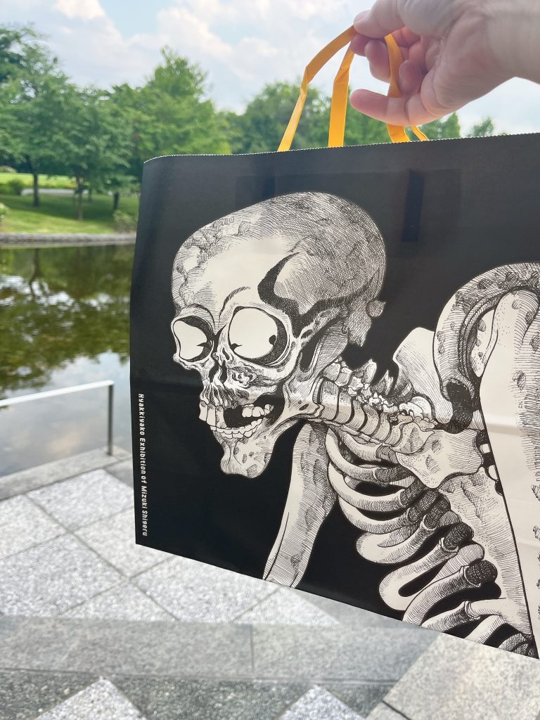 そのほか、物販コーナーもあり、商品数はそこまで多くはないですが、展覧会オリジナルのアクリルスタンドやマグカップ、Tシャツ、100の妖怪画のポストカード、鬼太郎グッズや書籍、カレースナックとプリンなどの食品系なども少し販売していました。