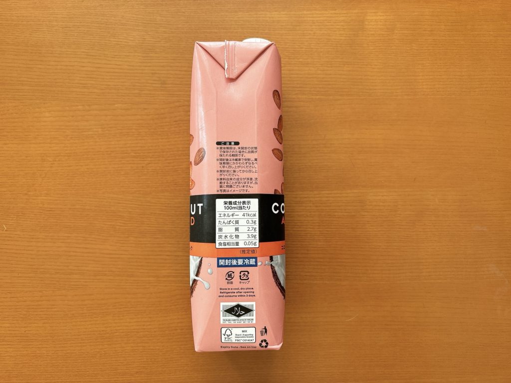 先日業務スーパーで買ってきたココナッツアーモンドミルク。