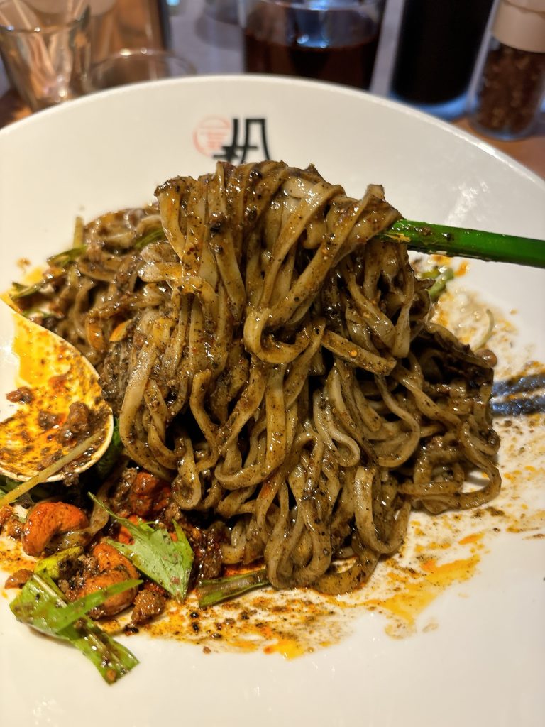 - 黒ごま汁なし担担麺は濃厚な黒ごまがたっぷり