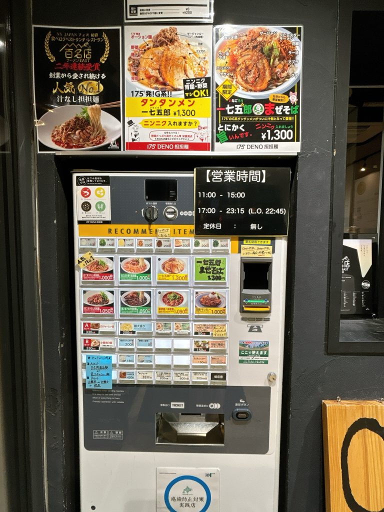 入口に券売機があるので、こちらで食券を購入します。